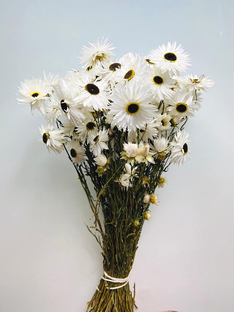 De Acroclinium wit is een lieve droogbloemensoort die een echt rustgevend gevoel met zich mee neemt. De Acroclinium bestaat uit kleine prachtige bloemetjes. De Acroclinium wit is uitermate geschikt voor los in een vaas te doen, of om te gebruiken als opvulling in een bestaand droogbloemen boeket.