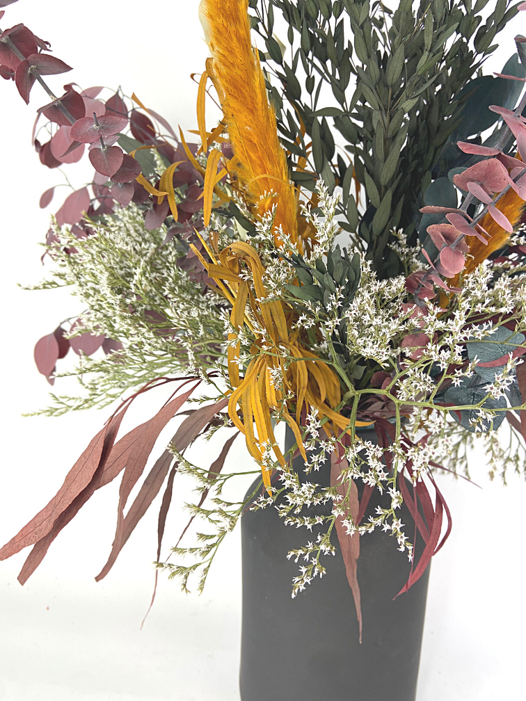 Onze droogboeketten worden ontworpen door onze twee topstylisten die al meer dan 35 jaar in het bloemisten-vak werkzaam zijn. Je ontvangt het boeket kant-en-klaar, dit houdt in dat je het boeket zoals op de foto ontvangt (gebonden en in deze samenstelling). Het boeket wordt zorgvuldig verstuurd in bubbelplastic en een sterke doos, zodat het in perfect staat bij jouthuis bezorgd wordt.
