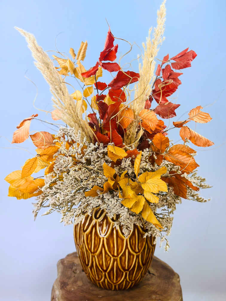 Er zijn boeketten die rust brengen, en boeketten die leven in de brouwerij brengen. Ons droogbloemen boeket 'Autumn Storm' doet beide. Dit unieke droogbloemenboeket is een eerbetoon aan de kracht en schoonheid van de herfst: vol beweging, warmte en natuurlijke elegantie.