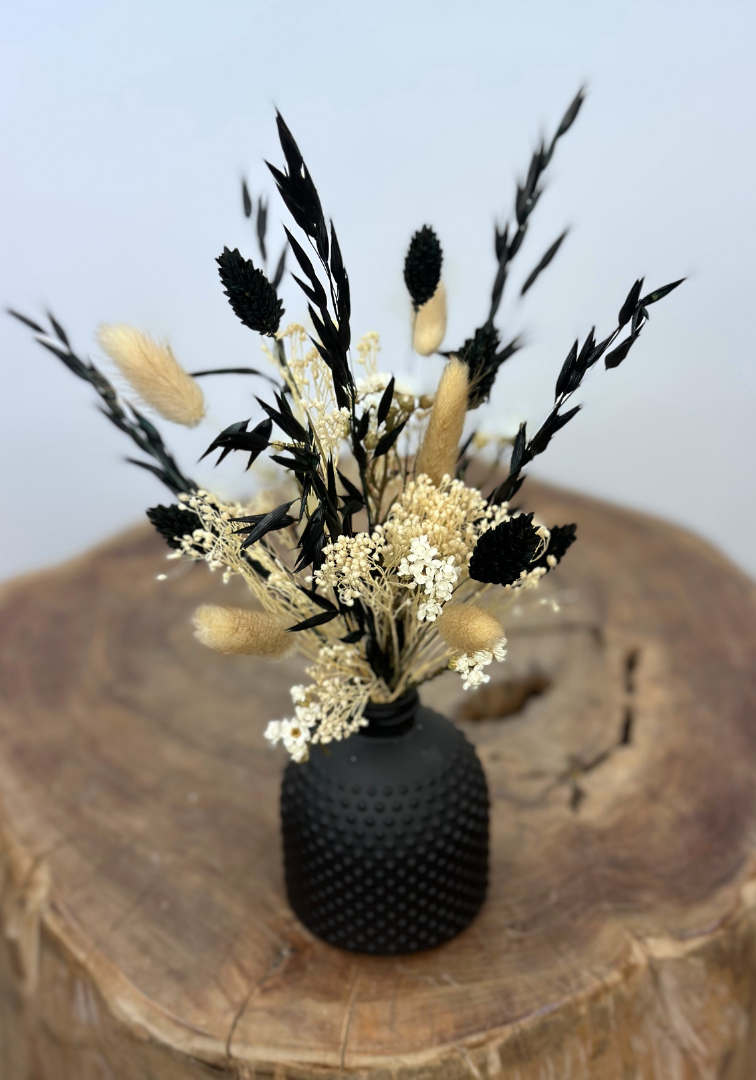 Beschrijving Droogbloemen boeket "Midnight Bloom" incl. vaasje