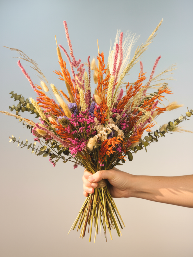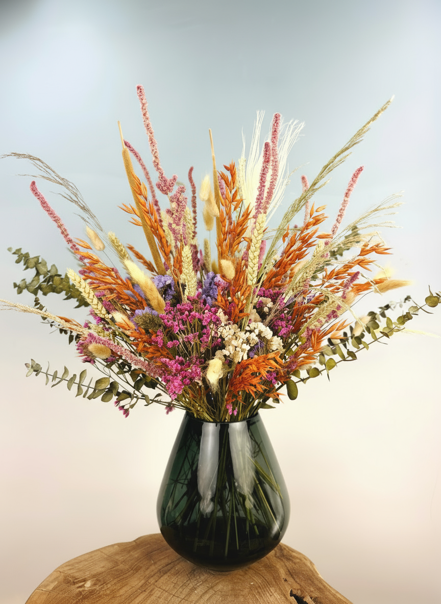 Altijd mooie droogbloemen bossen: Wij hebben de samenstelling zo ontworpen dat je altijd de juiste droogbloemen ontvangt die dit droogbloemen boeket vormen. Wij zorgen dat de droogbloemen voorradig zijn, zodat je erop kunt rekenen dat wat je koopt, je ook krijgt.
