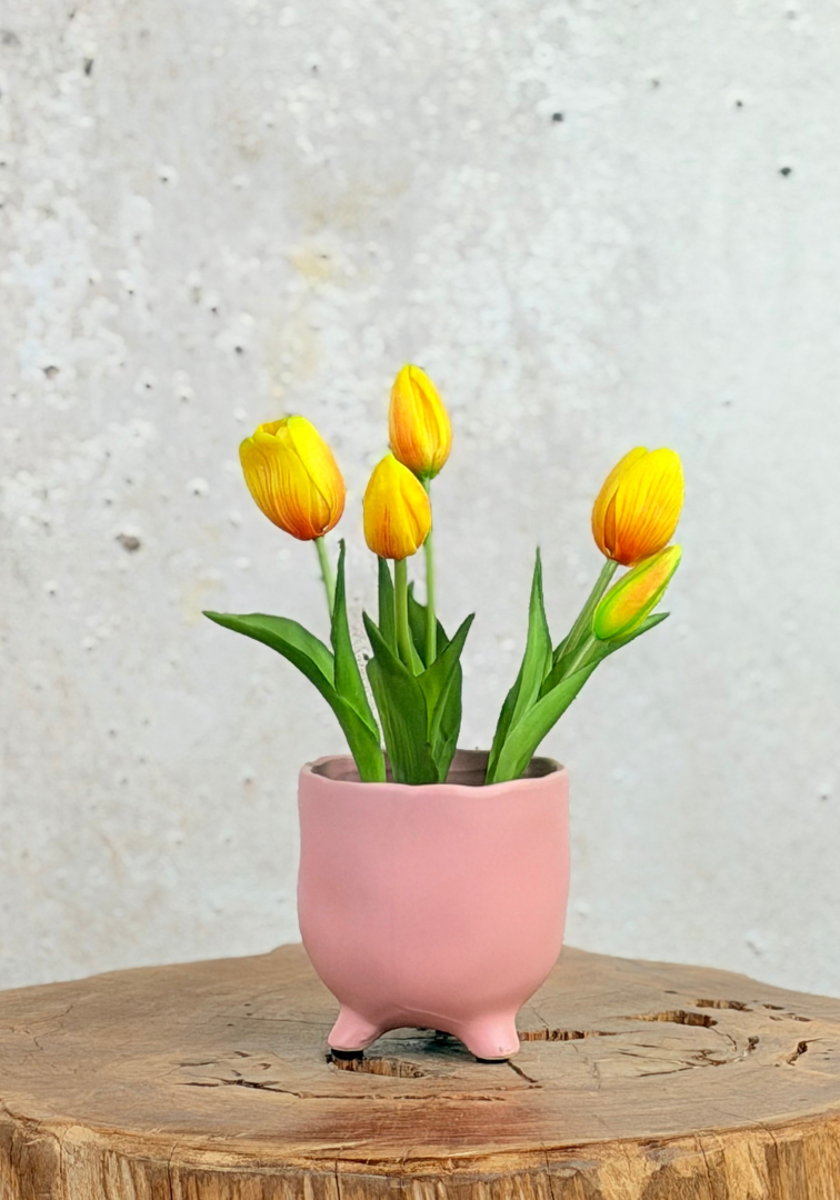 Kunst Tulpen - geel (incl. roze pot) | 30cm