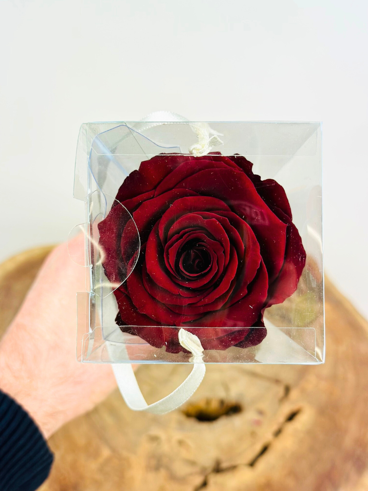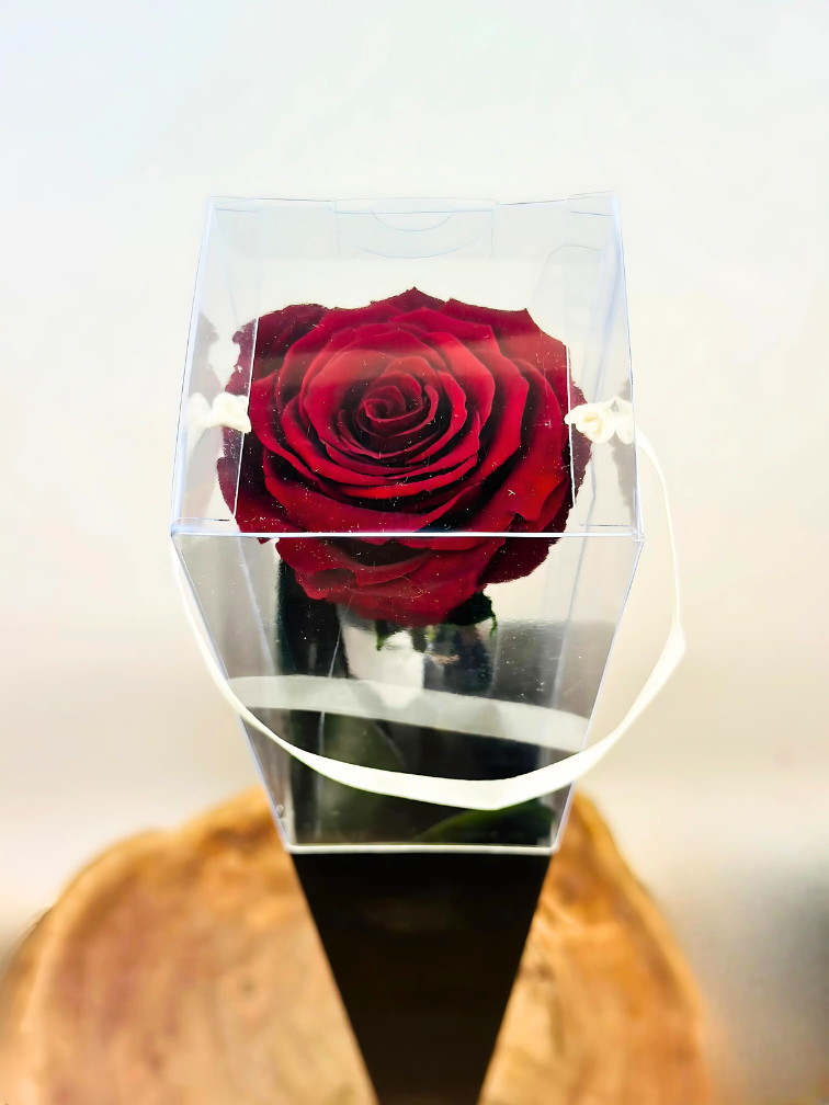 Beschrijving donkerrode Longlife Roos van 70cm in giftbox "Sealed Love"