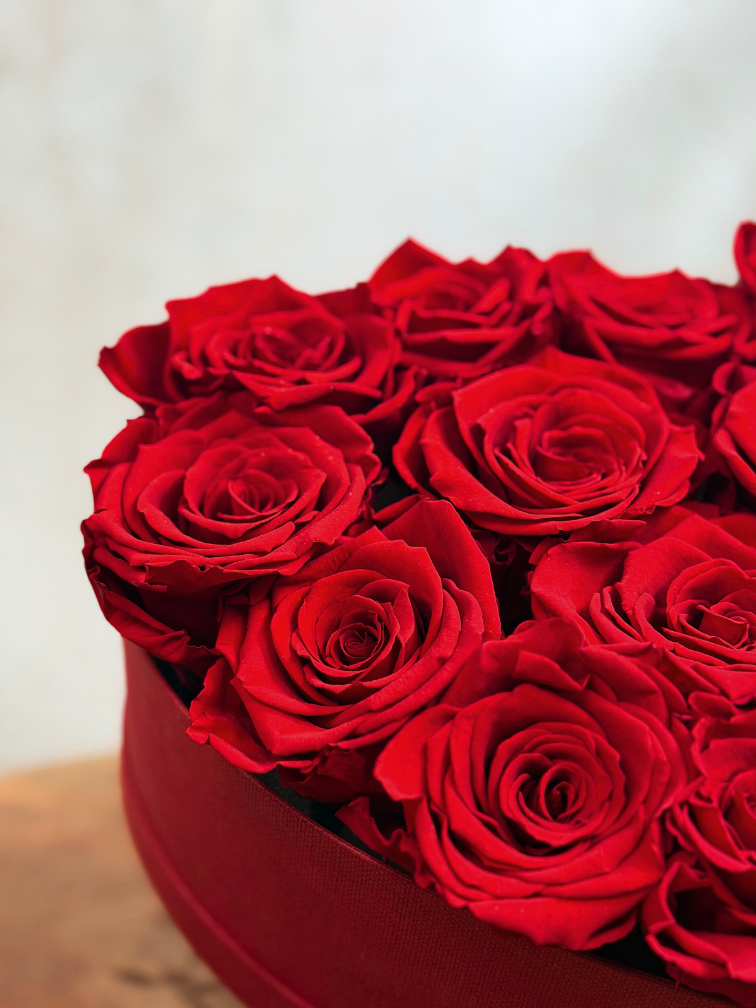 Longlife Rozenbox 'hart' met 14 rode Longlife rozen