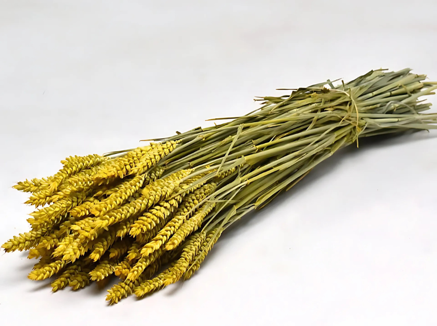 >> Je ontvangt ongeveer dezelfde hoeveelheid als de foto dat er getoond wordt. De foto op de afbeelding is namelijk een volledige bos tarwe. Het betreffen ongeveer 70 / 100 stelen per bos.