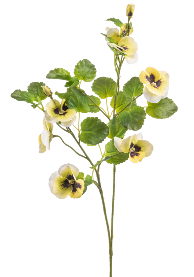 Iedereen kent haar wel, de prachtige bloemsoort 'Pansy', ook wel bekend als 'Viooltjes'. Met deze prachtige zijden bloemen maak je jouw boeket helemaal af! De zachte gele tint geeft een frisse, elegante sfeer aan ieder interieur. Dankzij de hoogwaardige zijdekwaliteit blijft de tak vormvast en kleurkrachtig, ideaal voor hoge vazen, bloemstukken of decoratieve arrangementen zonder onderhoud