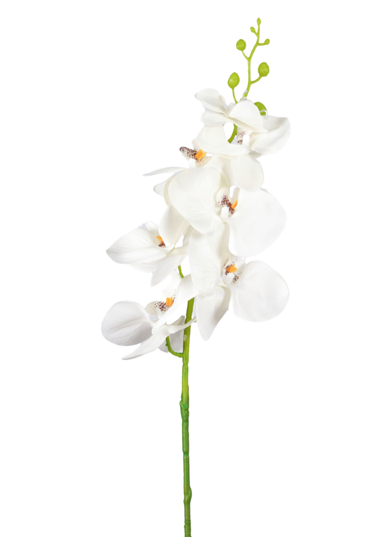 Jij kent haar vast wel, de prachtige Orchidee, ook wel Phalaenopsis genoemd. Onze zijden bloem "Phalaenopsis White" is een elegante bloem die de exotische charme van de Orchidee prachtig nabootst. De witte kleur geven de bloem een luxe en opvallende uitstraling. Dankzij de hoogwaardige zijdekwaliteit blijft de Phalaenopsis langdurig fris en vormvast, perfect voor zomerse arrangementen, tropische boeketten of als blikvanger in een losse vaas.