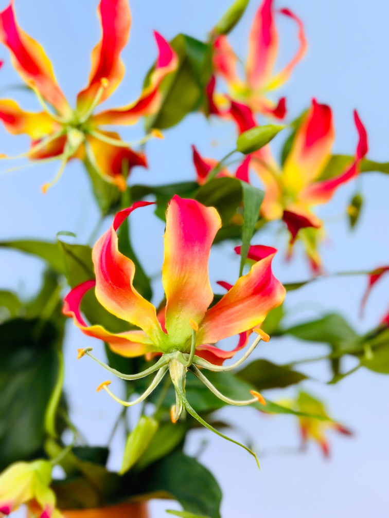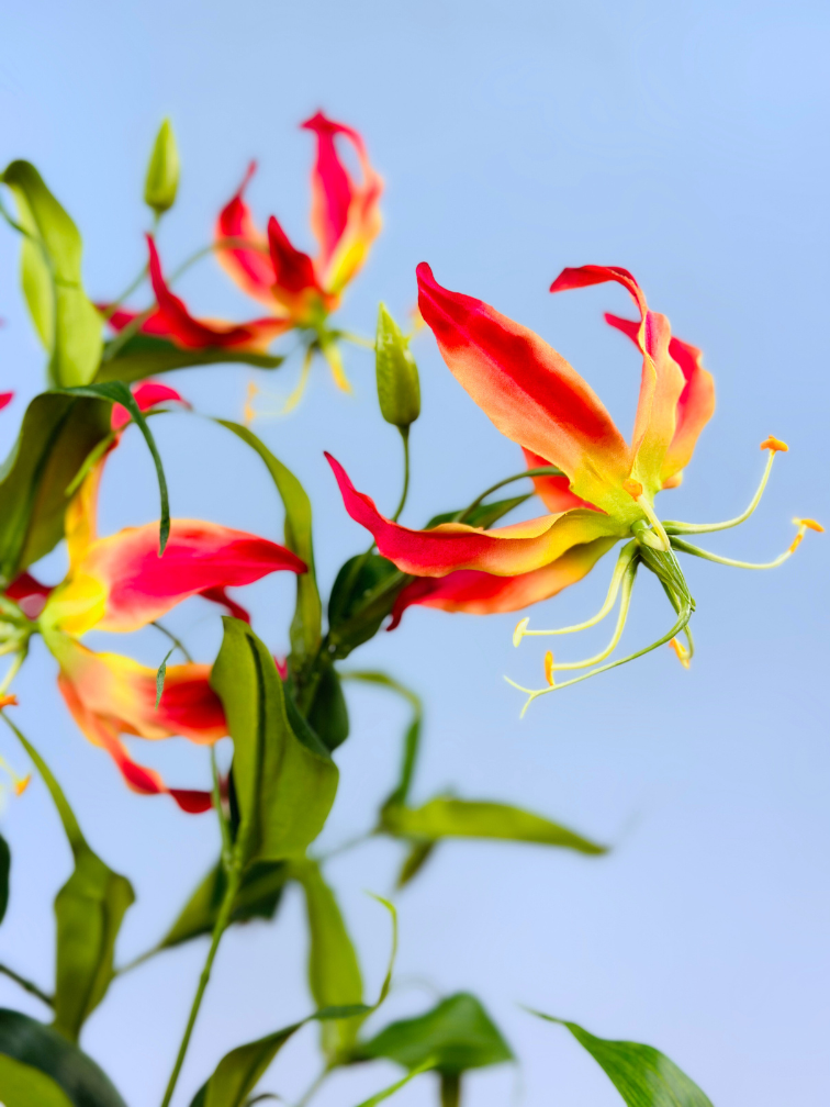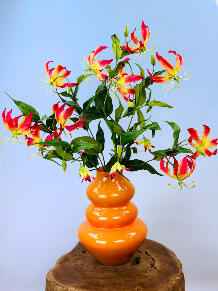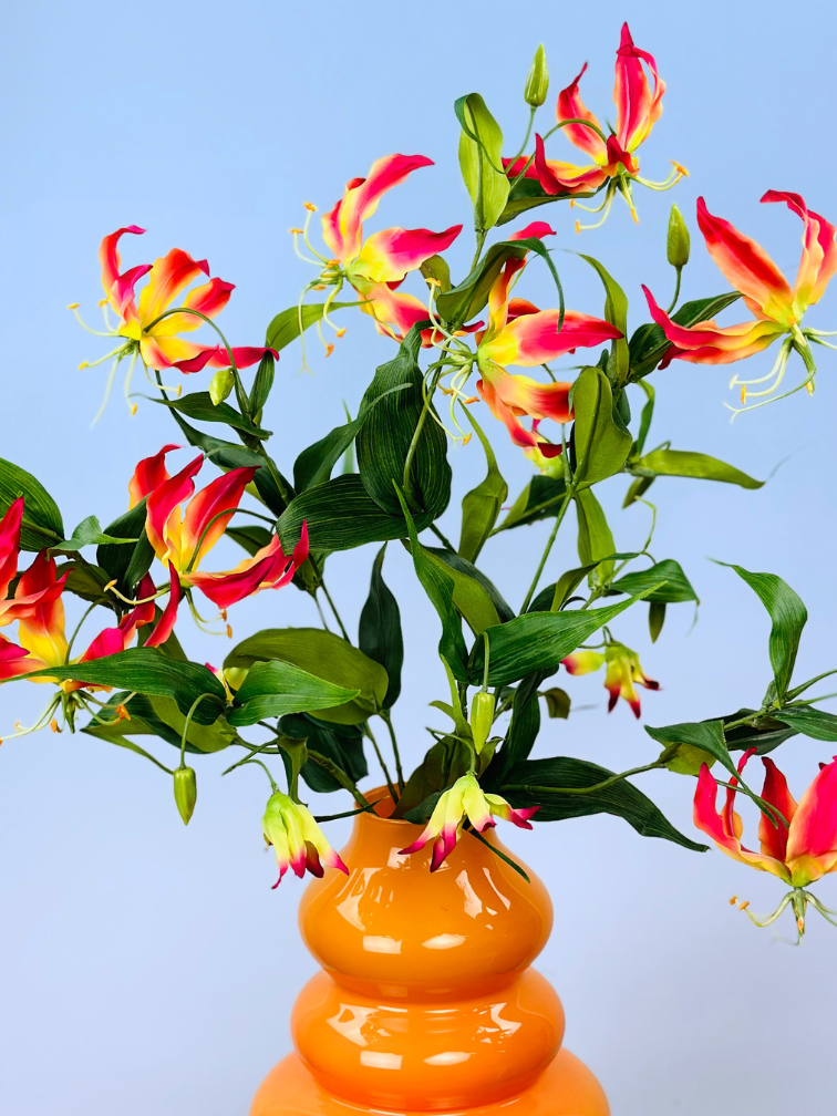 Ons zijden boeket "Garden of Paradise" is samengesteld uit prachtige Gloriosa bloemen. De Glorisia bloemen brengen dat heerlijke paradijs gevoel met zich mee. Een echte eyecatcher voor in huis.