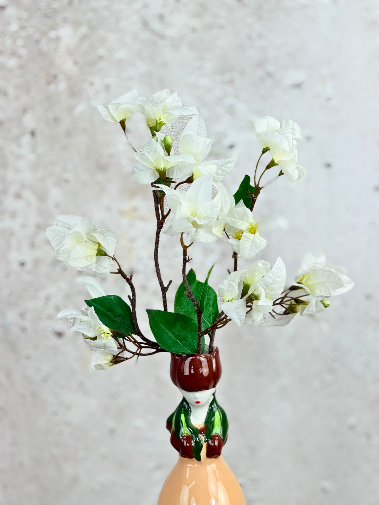 Ons zijden boeket "Silk Mind" is ideaal om cadeau te doen of jezelf mee te verwennen. Het boeket bestaat uit witte bougainvillea takken van zijdenbloemen. Dat betekent jarenlang genieten zonder onderhoud!