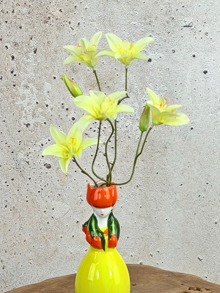 Ons zijden boeket "Yellow Mind" is ideaal om cadeau te doen of jezelf mee te verwennen. Het boeket bestaat uit gele lelie takken van zijdenbloemen. Dat betekent jarenlang genieten zonder onderhoud!