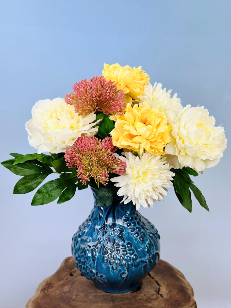 Ons zijdenbloemen boeket "Nature's Gift" is samengesteld met prachtige grote bloemkoppen. Een zijdenboeket dat echt een statement maakt. Verkrijgbaar met of zonder de 'Tullia' vaas.